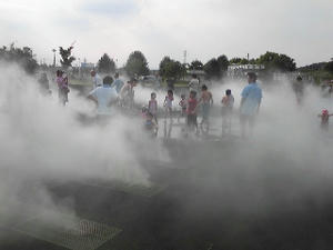 私も噴射されてる霧の上に乗ってみたけど、なかなか涼しかったですよ。